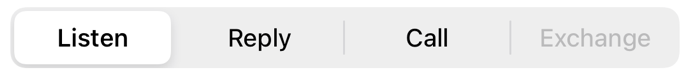 Exchange: Selected automatically when a contact was started (see screenshot to the right). The line in blue shows you the current state of your conversation. Stay here until the status says 'Finished and logged' or press any other Action (Listen, Reply, Call) to abort the contact.