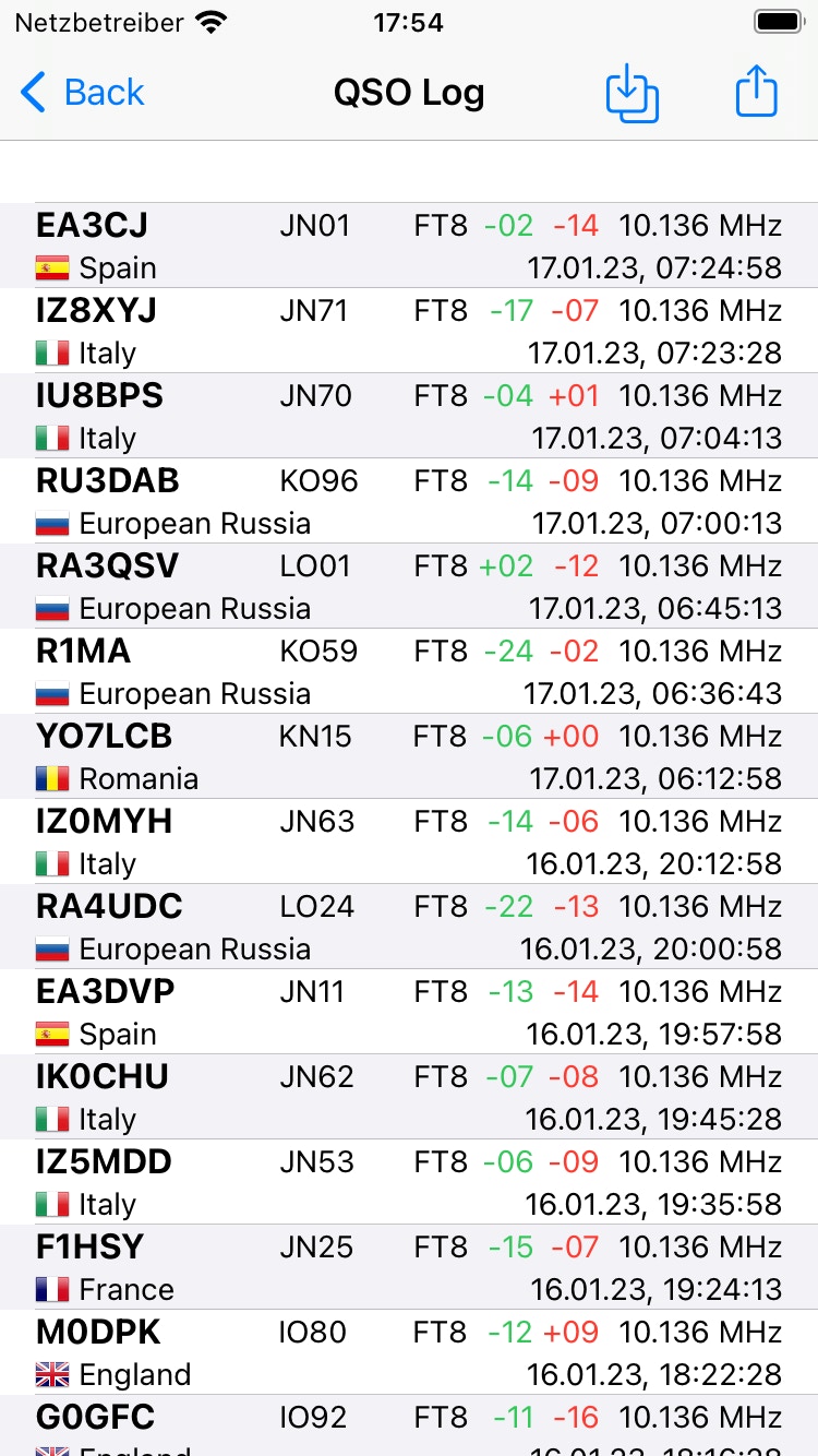 Log view, shows all logged contacts and allows to export the log - see below for details.